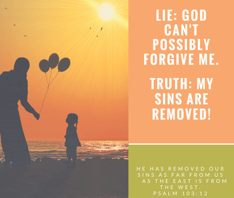 I recognized my belief that God can’t possibly forgive me as a lie from Satan. I claimed the verse in James 4:7-8, that if I would draw near to God, He would draw near to me. Since that time books such as The Mended Heart, The Unburdened Heart, and The Spirit-Led Heart by Suzanne Eller have helped me to remember how important forgiveness is in my life. God remembers my sins no more as proclaimed in Psalm 103:11-12. Today, my ministry is to help others find this same freedom. When we forgive from the heart we honor God and when we forgive ourselves, Satan is defeated.