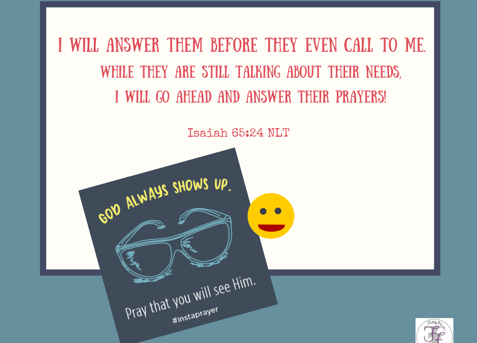 And after you pray “Help, Lord,” sometimes it may be hard to see the flowers for the weeds. Our good friend Laura Adams is joining us today. We pray her words will help our eyes open wide so we will see God when He shows up and shows off. Even now in this pandemic, Laura is seeing the goodness of God and encouraging us to do the same as she chimes in using the prayer prompt, God Always Shows Up, Pray that you see Him, from Kelly Odell Stanley’s book #Instaprayer, Prayers to Share.